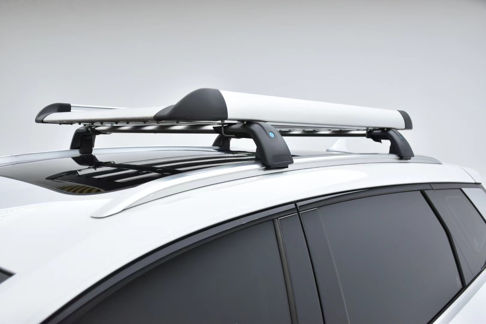 车主在车顶加装了行李架,应该没用过几次,非常新。买二手车比买新车还有一点好处是,前车主微改的东西随车“赠送”,喜欢的话可以继续使用;比如这个行李架,上面放上行李箱可以拓展储物空间,缺点是增加风噪和油耗。
