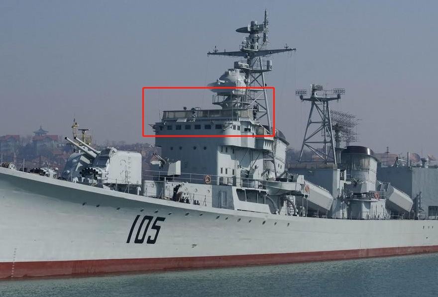 105“济南”舰 注意红框内的露天式航海舰桥