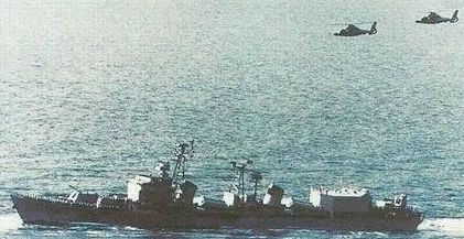 进入60年代,直升机的发展给海上作战带来了新思路。直升机速度远比舰艇快,无论在搜救、侦查还是反潜方面都有着得天独厚的优势。70年代美俄设计的巡洋舰、驱逐舰以及护卫舰基本都配有独立的直升机飞行甲板供直升机起降,部分舰艇还设有机库。此时中国海军自己的直升机发展比较落后,但得益于70年代末开始由法国引进“超黄蜂”和“海豚”两款性能优异的直升机并取得生产许可,所以海军舰艇搭载直升机的项目也被提上议事日程。