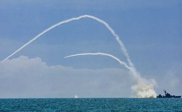 109舰发射2枚海红旗-7防空导弹