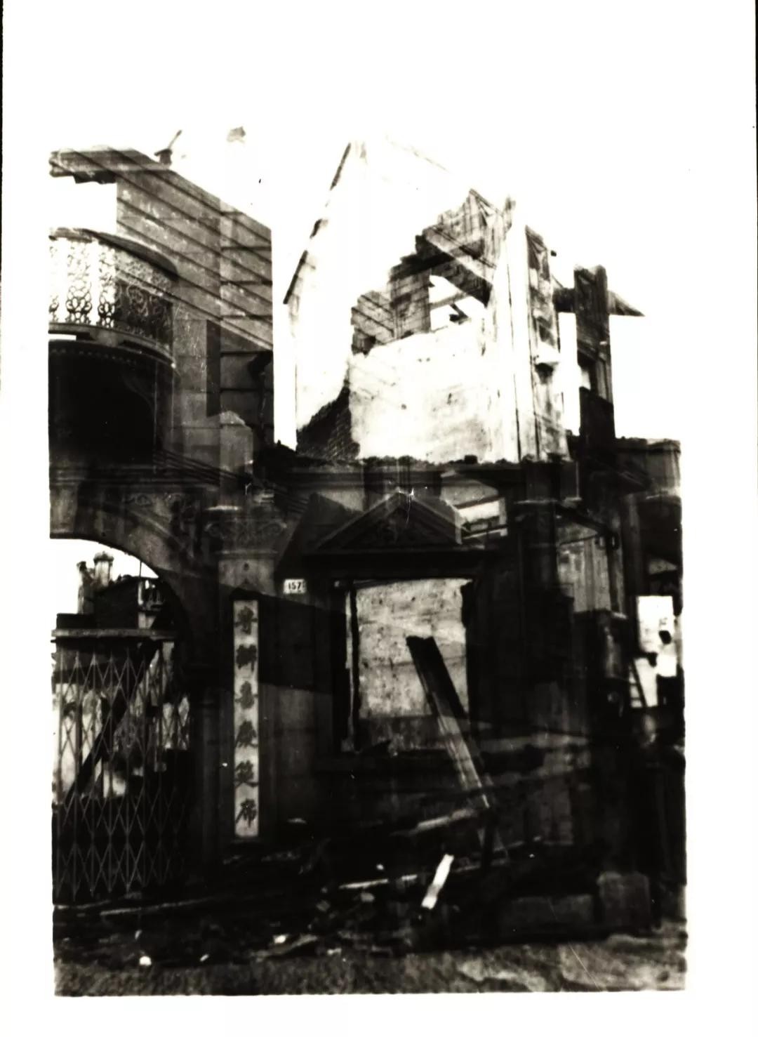 1938年凇沪会战中被日军炮火轰炸后的丹凤楼
