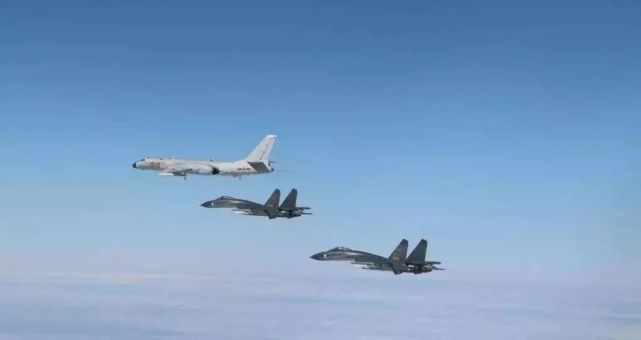 △绕岛巡航中的轰-6K和护航战机