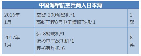 不过,这个说法也很容易造成误会,此次穿越对马海峡虽然对中国空军是首次,可这并不意味着中国军机第一次进入日本海。政知君注意到,公开资料显示中国军机首次进入日本海是在2016年的1月,时隔一年后,2017年1月多机型编队再次飞越对马海峡进入日本海。但根据机身上的编号可以判定,那两次的任务由我海军航空兵执行。