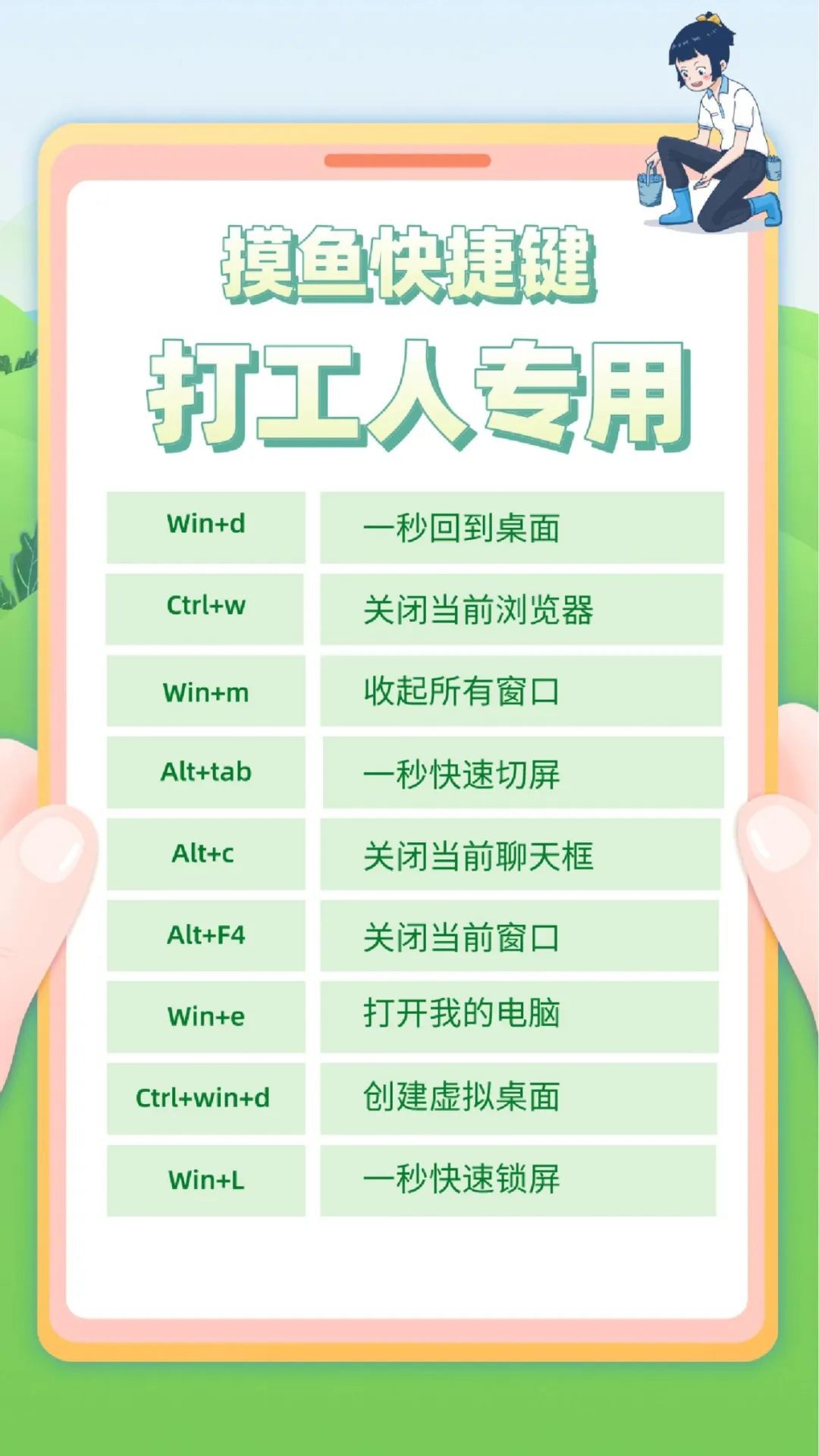 Alt + 空格键:显示当前窗口快捷键菜单,方便学习更多快捷键!