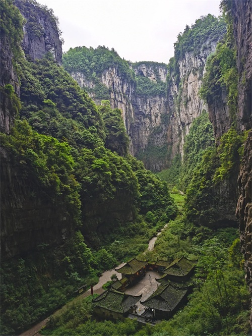 武隆天坑天生三桥:1.在游客中心扫各种码,服务人员指导网上先购了天生三桥天坑景区及往返摆渡大巴的票 ,125元,含电梯费。也可以同时购买地缝景区的票。服务人员建议先买一处,因为单线行程要走两个多小时,有人可能会吃不消,下一个景点可以根据自己情况灵活选择继续前行,或者改天再进。嘿嘿,还是蛮人性化的,反正没有套票优惠。2.坐摆渡车抵达第一个景点天生三桥地坑。景区大门很低调,只有一个不起眼的小房子,在变形金刚的右手边。入口就是一个下行的台阶步道,一直走下去,就来到电梯处,乘下行电梯似乎只有一分钟,就到了谷底,眼前200米高,300米宽的石洞让人震撼。3.再走一小段台阶就下到了天坑,天坑中央就是电影《满城尽带黄金甲》的取景地——天官福驿。4.再往后走则是电影《变形金刚4》的取景地—青龙桥和黑龙桥。天生三桥(也叫天坑)是武隆众多景区中最重要,也是最值得花费时间去游玩的景点。