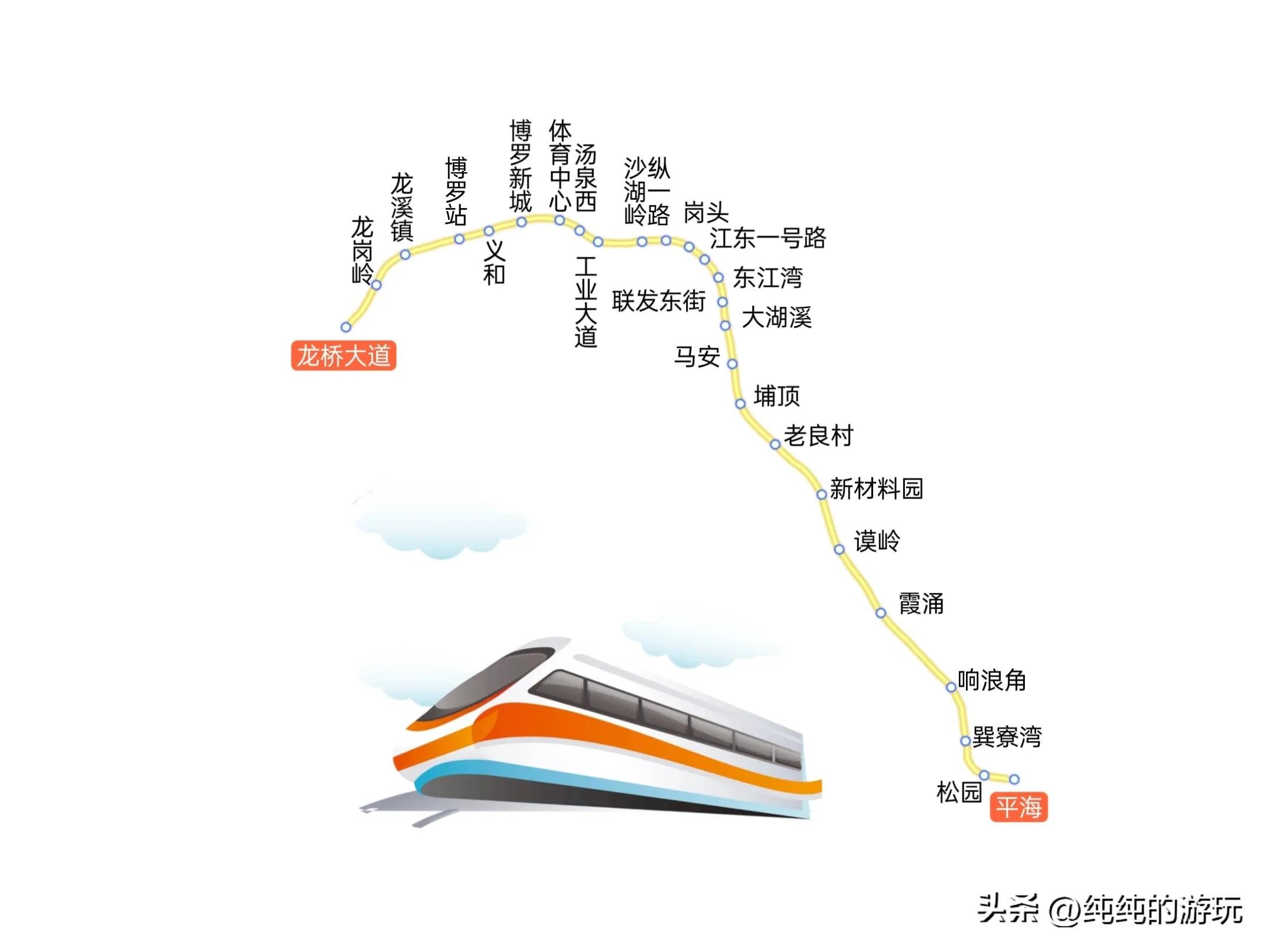 s3:这条线路长约131.9公里,计划设立26座站点,是七条规划中路程最长的线路,从博罗县龙桥大道站起,依次途经博罗县的龙岗岭、龙溪镇、博罗站、义和、博罗新城,至惠城区的体育中心、汤泉西、工业大道、沙湖岭、纵一路、岗头、江东一号路、东江湾、联发东街、大湖溪、马安,至惠阳区的埔顶、老良村,再至惠东县的新材料园、谟岭、霞涌(惠阳区)、响浪角、巽寮湾和松园后,直至平海镇为止。