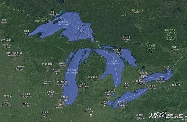 苏必利尔湖是世界第一大淡水湖,休伦湖面积约5.9万平方公里,是北美第二大淡水湖,也是美国和加拿大共有。此外还有伊利湖,安大略湖,都是美国和加拿大共有。只有密歇根湖,完全位于美国境内。密歇根湖区气候温和,是美国的避暑胜地,周边有芝加哥,密尔沃基等城市。