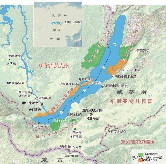 贝加尔湖完全位于俄罗斯境内,归属俄罗斯伊尔库茨克州和布里亚特共和国,整个湖泊呈弯月状,南北长约636公里,东西平均宽约48公里,最宽约79.4公里。贝加尔湖地区环境优美,湖水清澈,被称为西伯利亚的明珠,被联合国教科文组织录入了世界自然遗产名录。