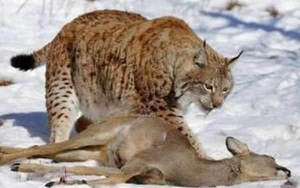 成年猞猁的平均体长在1.2米左右,体重平均在30公斤左右。作为猫科动物,猞猁同样也是纯正的食肉动物,它的主要猎物以啮齿类动物、野兔,以及中型的野猪、野鹿、狍子等有蹄类动物。