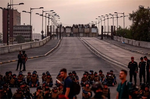 2022 年 10 月 25 日,伊拉克安全部队举行集会,抗议新总理穆罕默德什叶派苏丹的新政府。(图片来源:卫报)