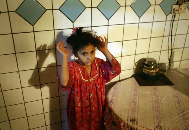 2007 年 6 月 30 日,一名伊拉克女孩举起双手,当时美军和伊拉克政府军正在搜查她的家。(图片来源:路透社)