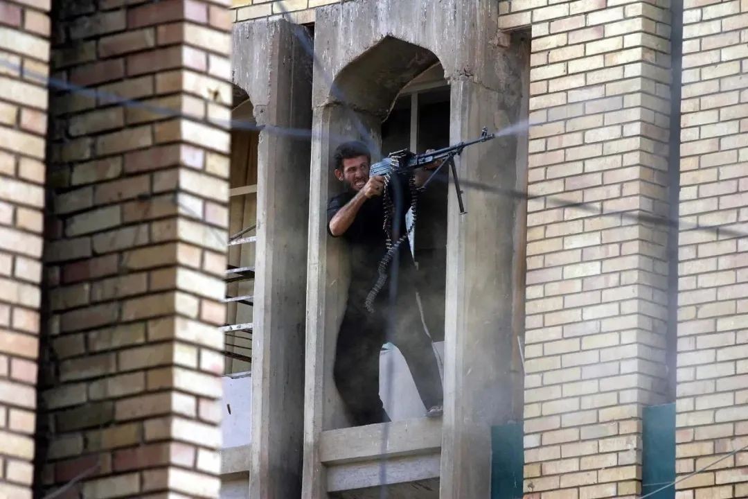 2004 年 8 月 22 日,什叶派民兵向美军阵地开火。(图片来源:纽约时报)