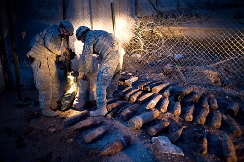 2007年 4 月 12 日,美军在安巴尔省例行检查,发现了装满炸弹的袋子。(图片来源:纽约时报)
