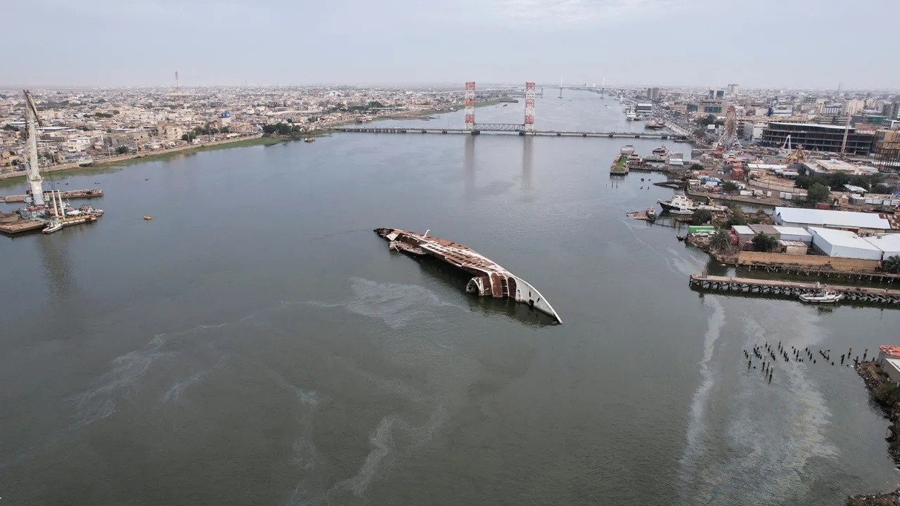 2023 年 3 月 9 日,伊拉克巴士拉,萨达姆的游艇残骸,20年来,它一直躺在阿拉伯河上面。(图片来源:路透社)