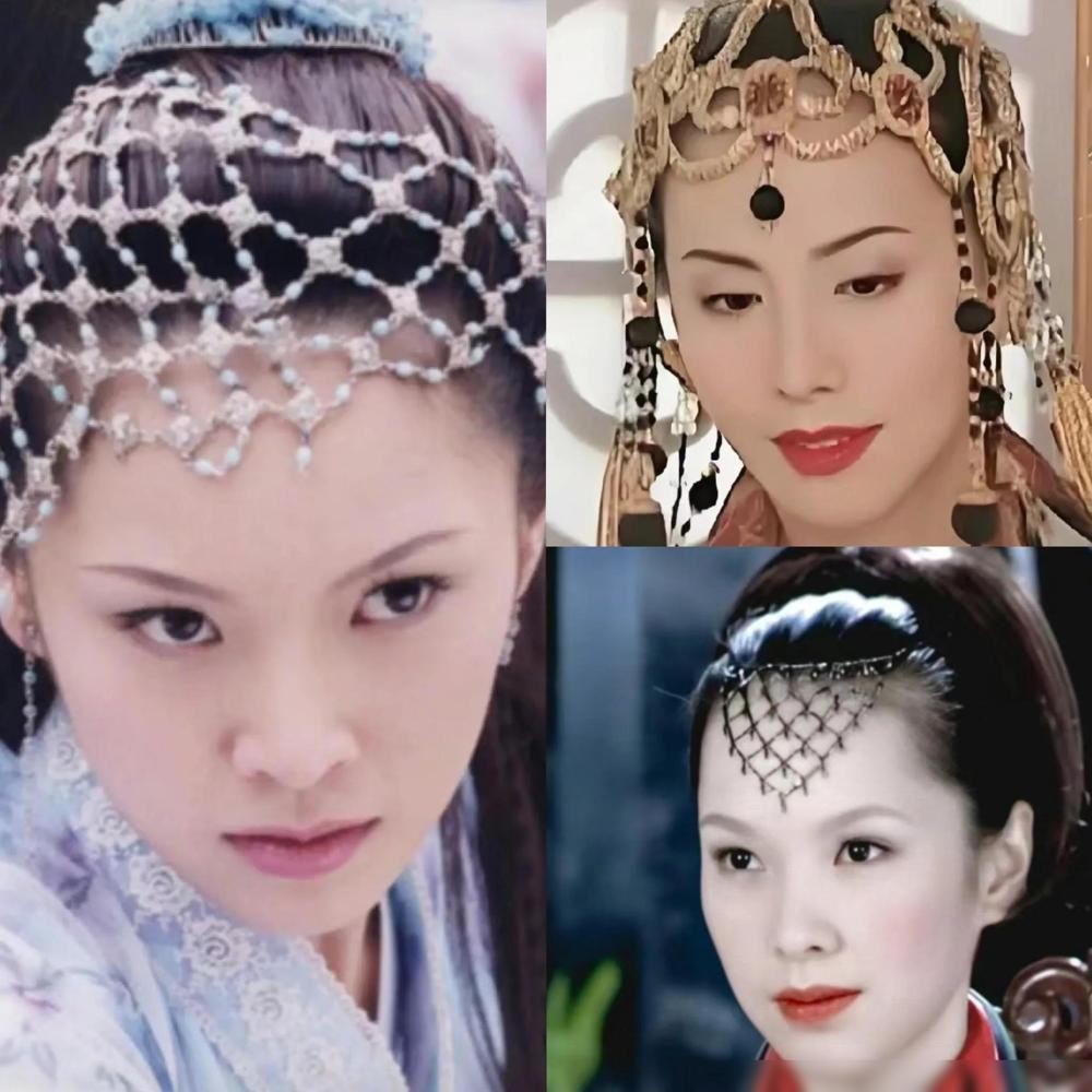 而赵敏最出名的造型就是她那个古代美人的三个额头发髻再叠加一个巧妙地位于太阳穴附近的小辫子加两串珠子像是吃糖葫芦一样穿起来让灵动和优雅碰撞出奇妙火花的造型,在浓艳眼妆和珠翠衬托下显得更美贵清新。