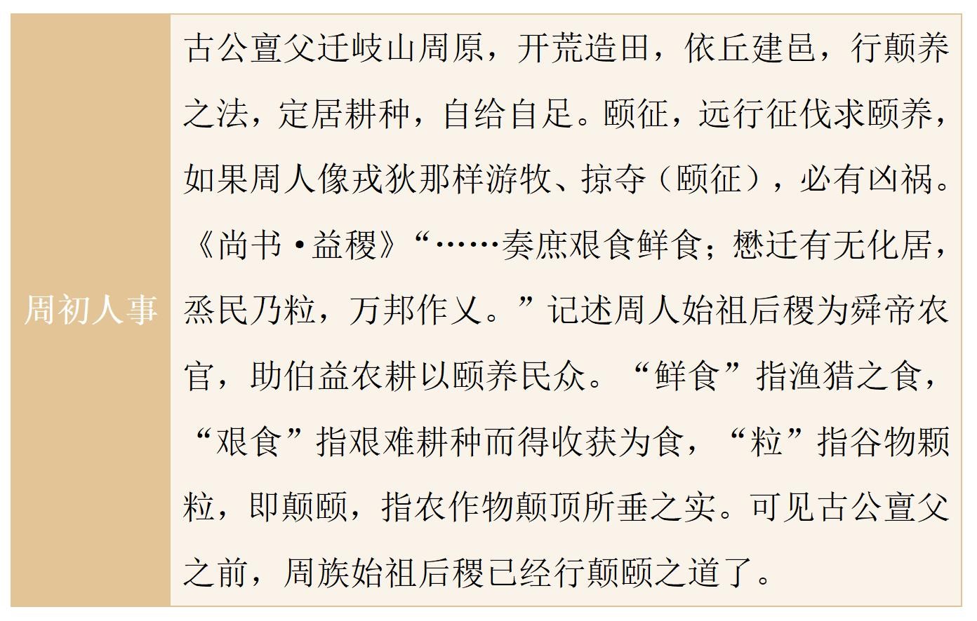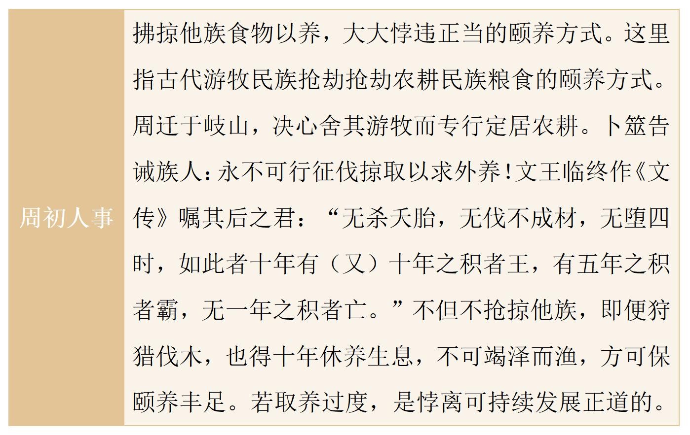 《汉书·郦食其传》“王者以民为天,而民以食为天”,周初圣贤广兴农业,自求口实,同得颐养,不事掠夺,养德养民进而养天下,体现先进的颐养观。