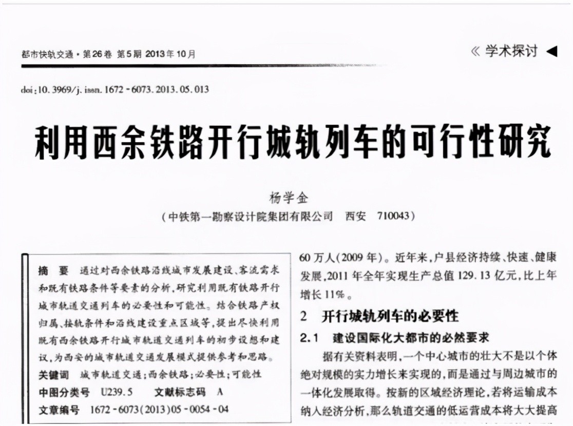 2013年,中铁第一勘察设计院工程师杨学金,也在《利用西余铁路开行城轨列车的可行性研究》中提到,利用西户铁路改造城市轨道,有利于带动户县及秦岭旅游。