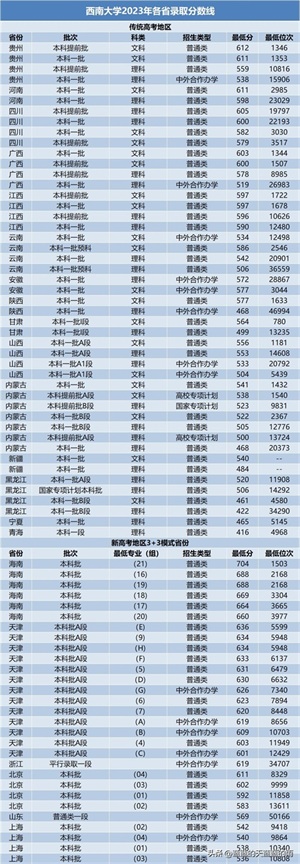 2023全国211大学及部分双一流大学在各省投档分数线!24考生参考