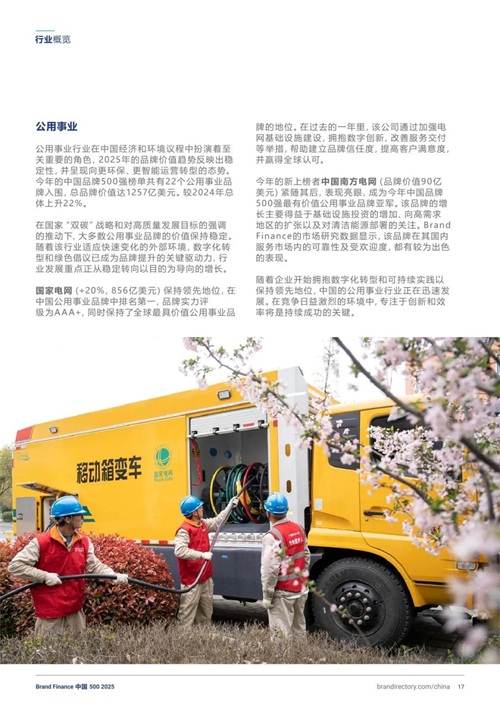 公用事业:国家电网以绿色形象登顶,品牌价值增长20%至856亿美元,其无六氟化硫断路器技术助力碳中和目标。中国南方电网新上榜,品牌价值90亿美元。