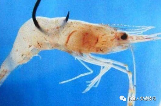“钩虾身”,我们用鱼钩从小虾的尾部向头部勾入,这样一些不是那么精口的鱼类在咬虾饵的时候,就很容易上钩,这种挂虾的方法是一些新手最常用的,简单便捷,成功上鱼的几率也高,但是这种方法老手们是绝对不会用的,因为这样挂法,比较容易造成虾饵的死亡,而且这样的挂法也不能保持虾饵在水中的活性!这样的虾饵对鱼群的吸引力就没有那么大了。