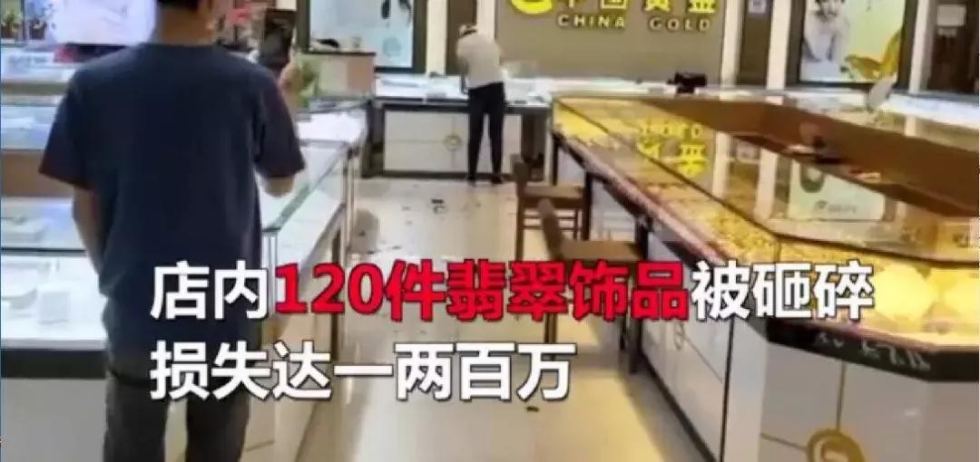女子拎哑铃狂砸金店柜台,120件翡翠饰品被毁损失达百万