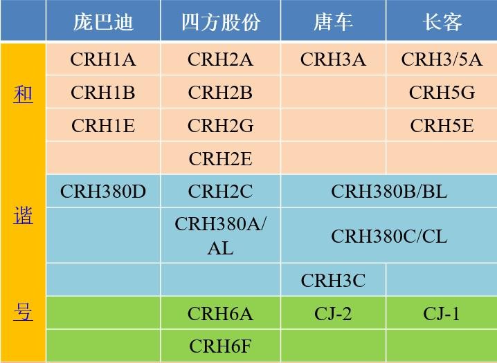 和谐号动车组主要车型