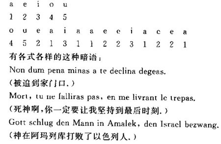 上图所示是密码学里最简单的一种密码,即把数字和几个字母对应,然后把字母镶嵌到一句话里,记住这句话,就记住了排列方式。