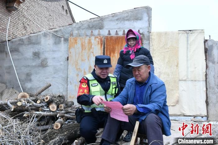 图为李文辉向村民做反电信诈骗宣传。(资料图)马波 摄
