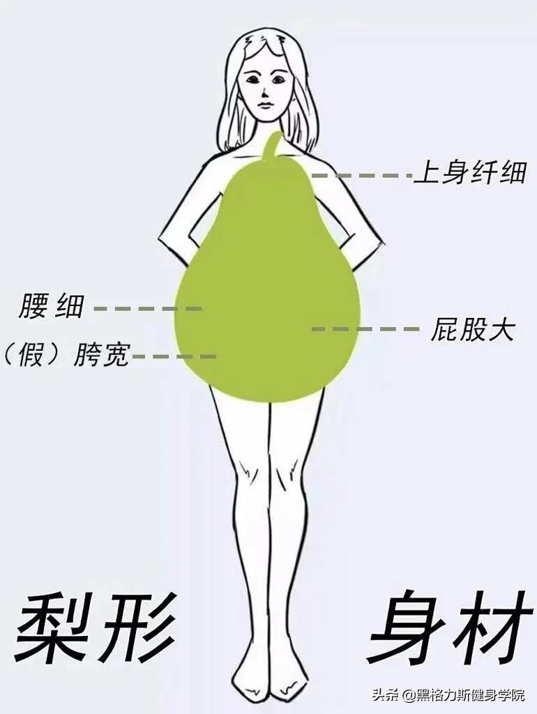 梨型身材,从臀部到大腿的中段较胖,是典型的东方传统女性身材。肩窄腰细胯宽腿粗,腰部以下肥胖且容易堆积脂肪。