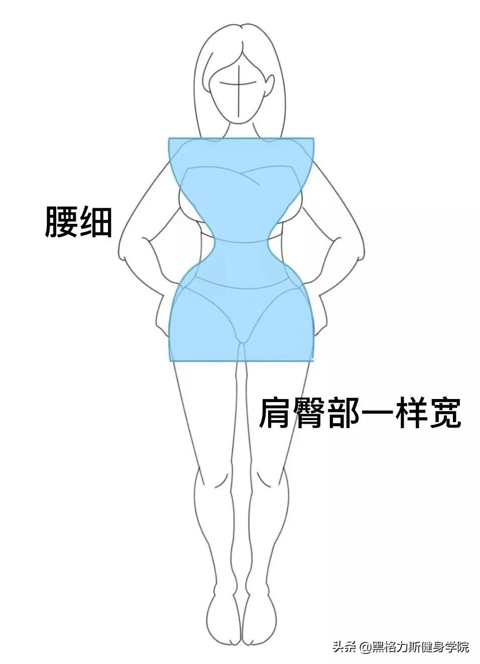 沙漏身材,臀部和肩膀一样宽,所以身上一旦有肉就容易显得很壮实。腰部相比之下比较纤细,但臀部一般较平坦,容易给人造成比例失调的视觉效果。
