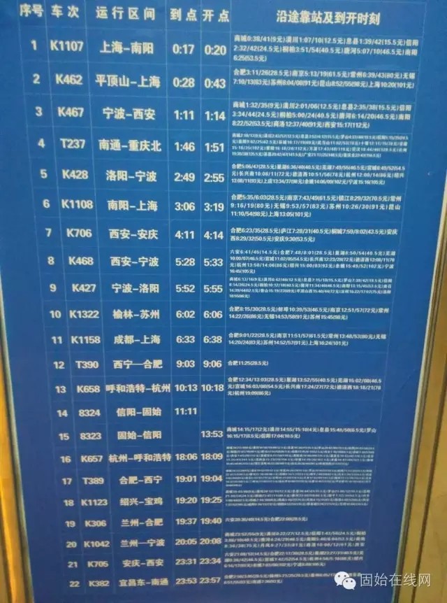 (目前固始火车站22列车时刻表)
