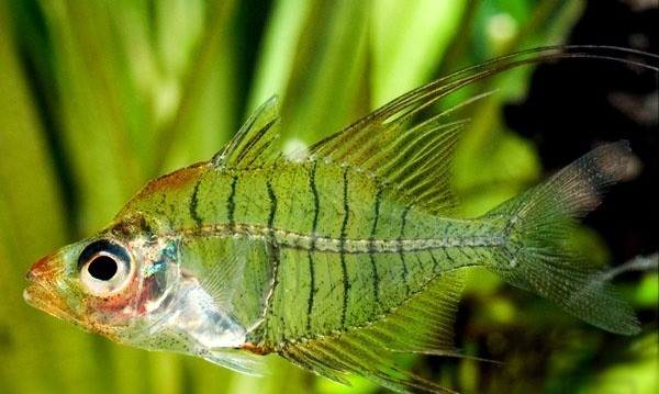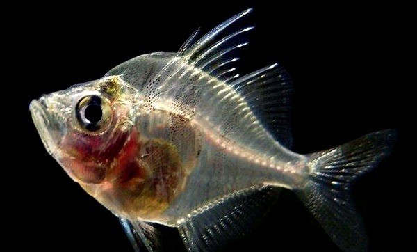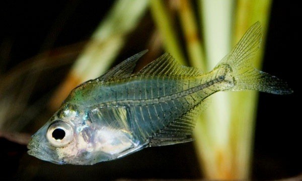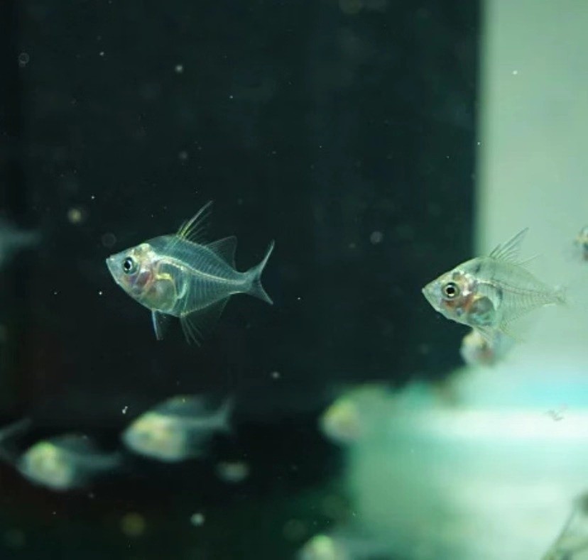 玻璃拉拉被灯光照射下鱼体及各个鱼鳍均未透明状,可以清晰的看到骨骼、内脏、血管,因此也被称为X光鱼。