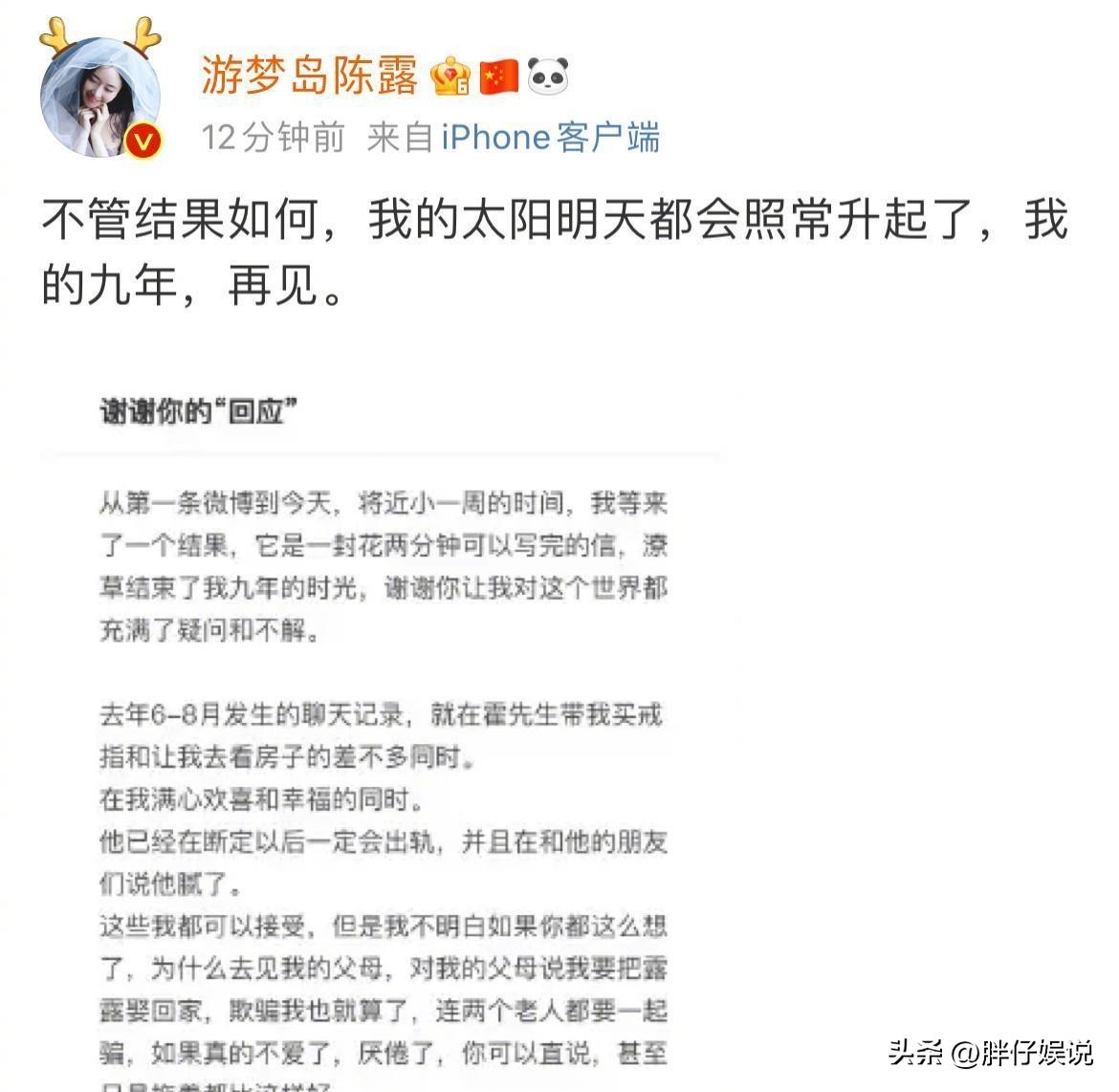 陈露先是在社交平台上发文,控诉霍尊的种种不是。