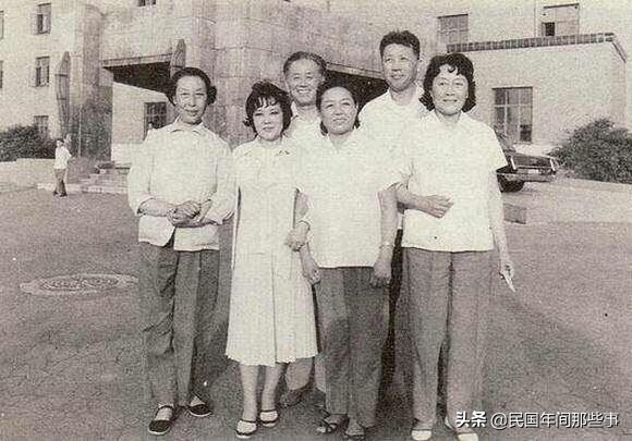 1978年,李香兰(前排左二)访问长春电影制片厂,与当年老友在“满映”楼前留影