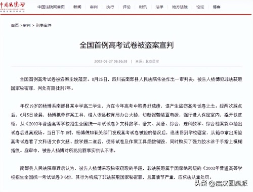 3.中国法院网——全国首例高考试卷被盗案宣判