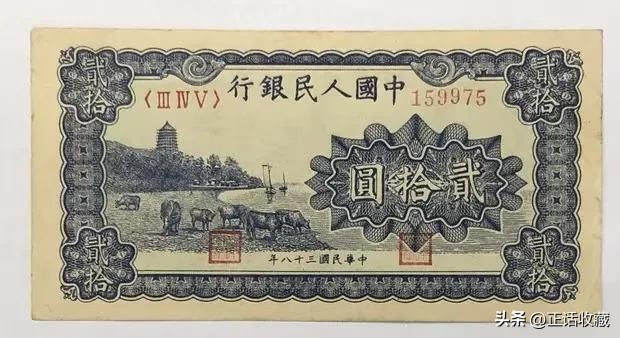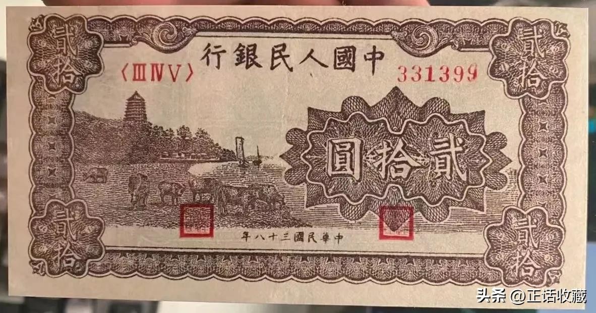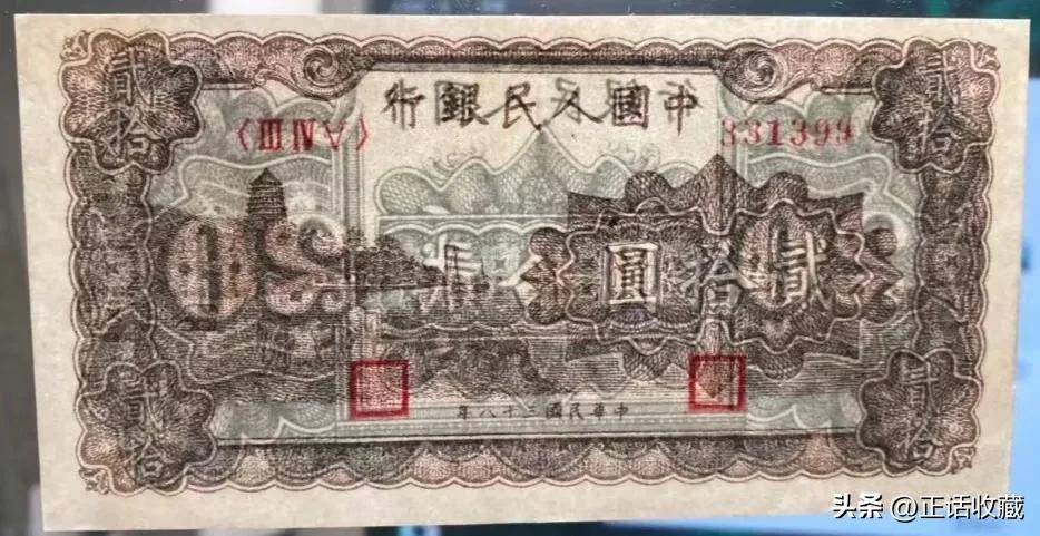 第一套人民币是我国人民币的开山鼻祖,很多方面都为后面的版本奠定了基础。贰拾圆纸币也是一版币所有面值中版别较多者,由于后面几套人民币没有这个面值,导致人们认为它成为绝唱,曾经一度暴涨。
