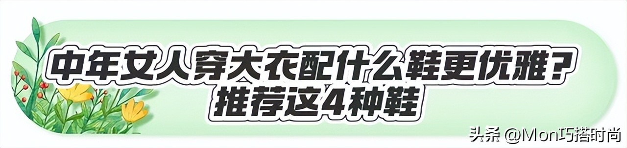 要让大衣变成中年女人的“优雅战袍”,第一选择当然是配“高跟鞋”。就连顶级名媛孟晚舟都爱这么穿,露出脚背、脚踝,女人味十足还显瘦显高。