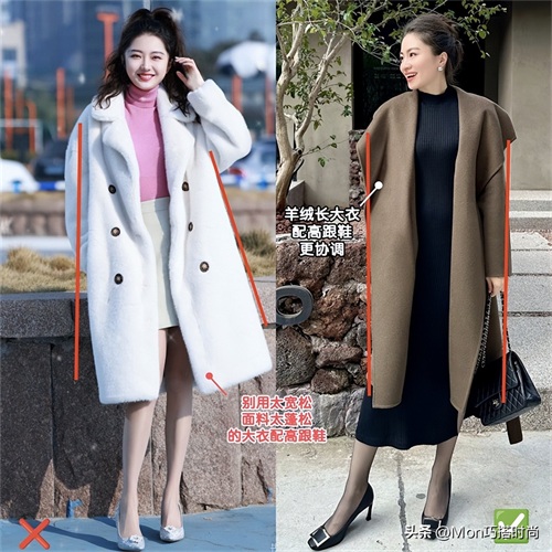 (规律一)宽松大衣+厚底鞋,修身大衣+高跟鞋
