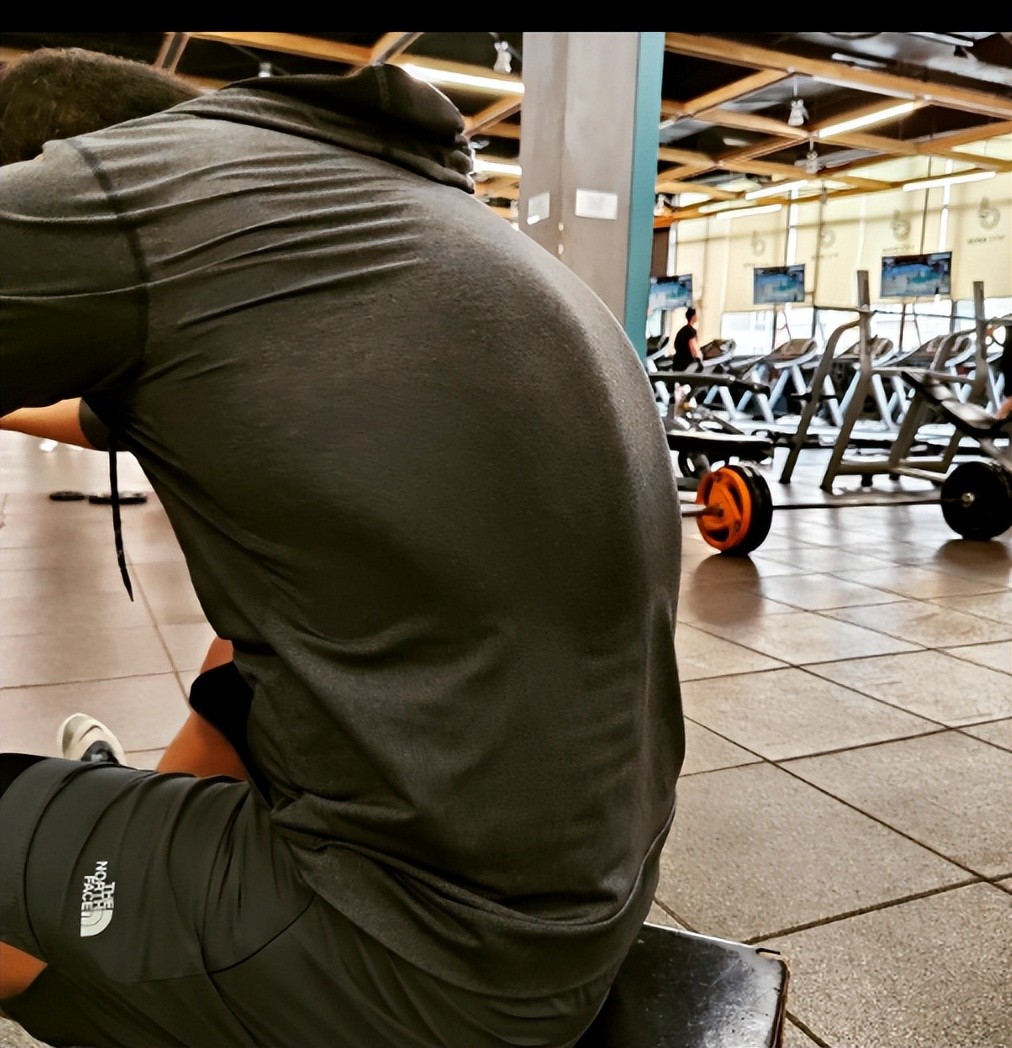 照片中,张默身穿运动服,后背和腰部肌肉凸出明显,浑身的腱子肉相当吸睛,他腿上皮肤黝黑,十分有男人味。
