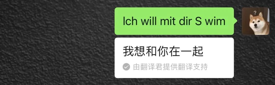 03.微信发送:lch will mit dir S wim(翻译:我想和你在一起)