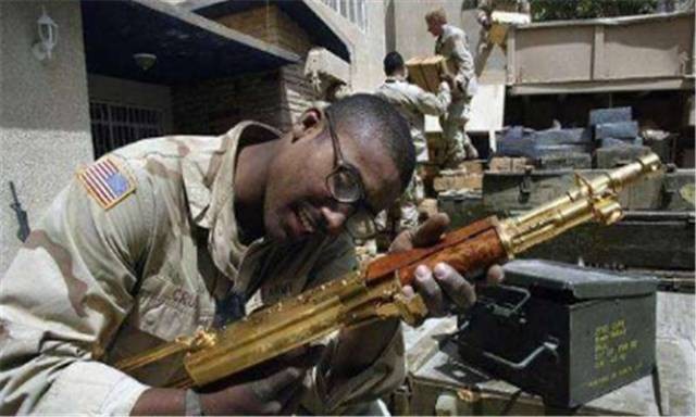 然而从现实情况来看,萨达姆本人也从不用这款枪进行射击。美国在用一个半月打下伊拉克以后,也是把萨达姆当年修建的宫殿包括地宫都给翻遍了。当然他们也是收获颇丰,大堆的黄金,简直刷新了美国大兵对于财富的认知。在萨达姆的私人储存室中,还有着用黄金打造的各种收藏品,其中最引人注目的还是那些黄金打造的武器。