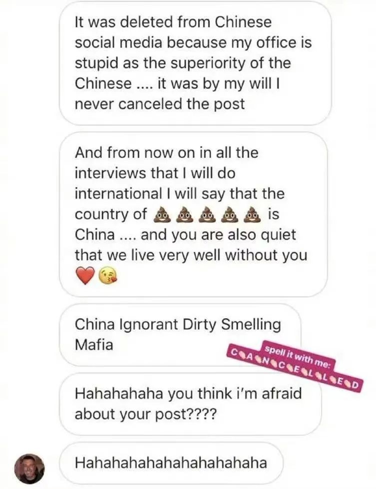 截图经由多方渠道传播,迅速发酵到国内网络,导致DG遭到国内万人讨伐,大秀在举办当天被取消,群星抵制。