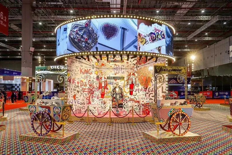 在2020年进博会上,DG展台布置更豪华奢靡: