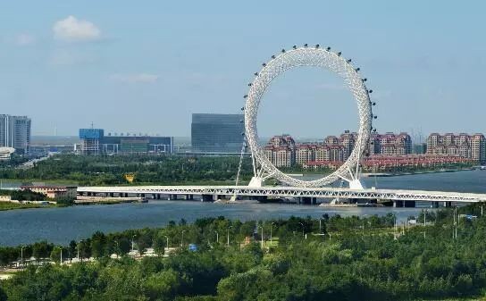 这座壮观的空心建筑位于渤海之滨,高142.52米,比“伦敦眼”还要高10米,创下了最高无轴摩天轮的吉尼斯世界纪录。