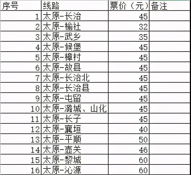 太原到长治客运班线票价直线下降