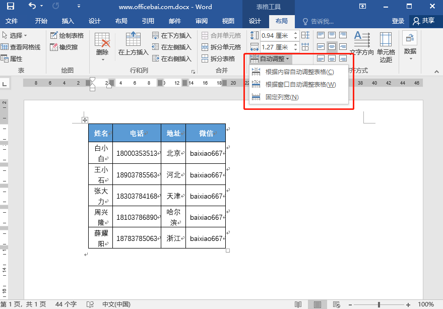 让word自动调整表格宽度