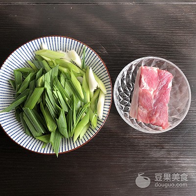 1、准备五花肉,青蒜洗净切段备用