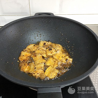 5、放入老干妈辣酱翻炒均匀