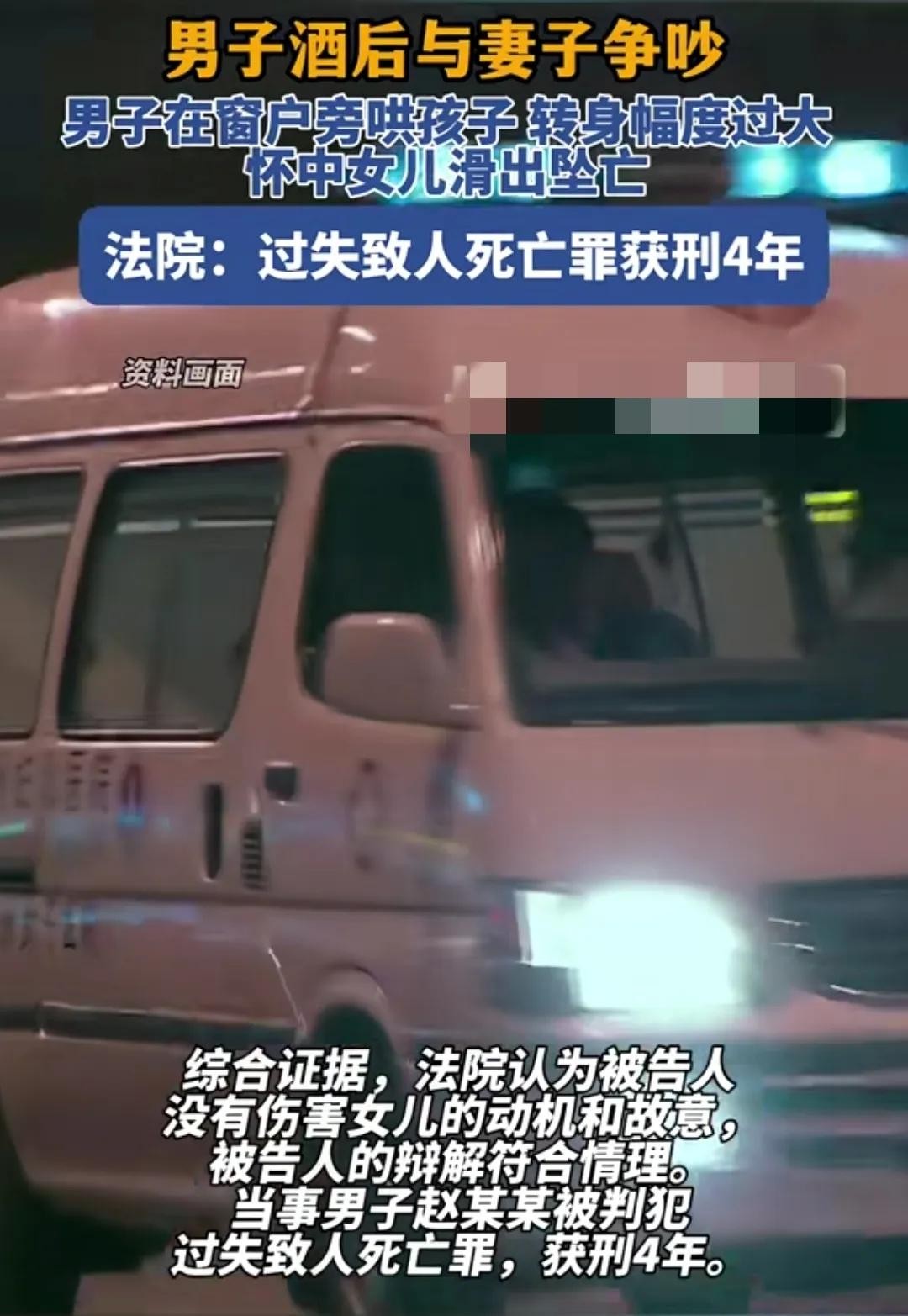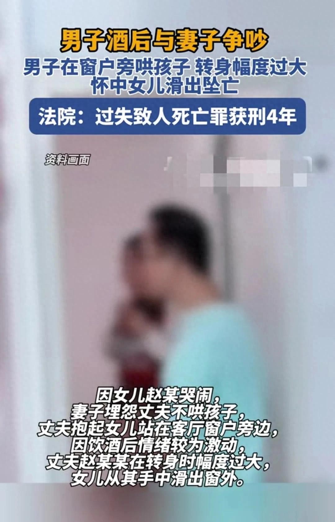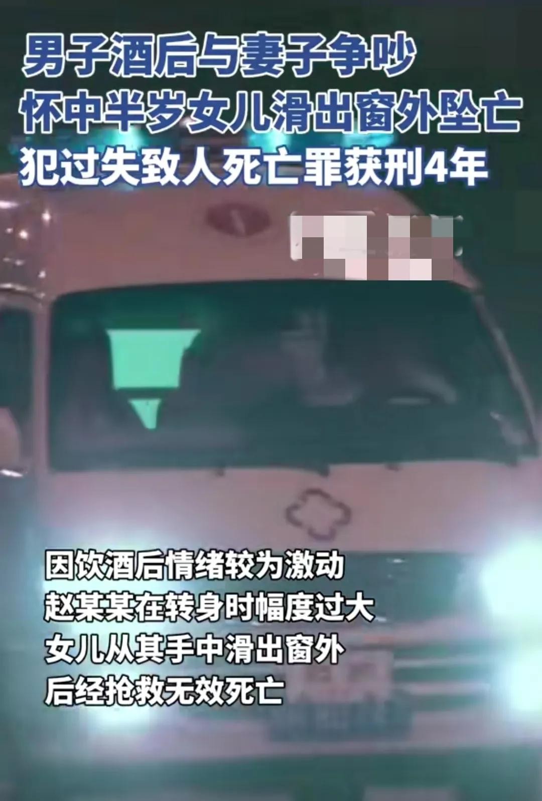 酒后争吵引发的悲剧,让人痛心疾首。6个月大的女儿从父亲赵某某怀中滑出窗外,从6楼坠下,最终抢救无效死亡。