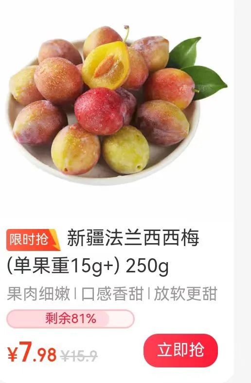 据了解,随着国产西梅大规模上市,市面上西梅的零售价普遍下降。而在8月初,品质好的西梅可以卖到二三十元一斤。短短一个月,价格接近腰斩。福州一家果品批发市场的摊主表示,西梅的价格这两年来可以说一年比一年低,目前西梅价格已经不到10元一斤。